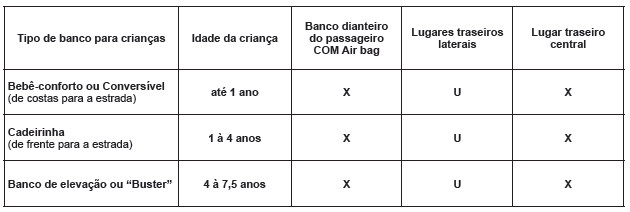 Sempre verifique, no manual de utilização, a correta montagem do dispositivo de retenção (cadeirinha/ banco) para crianças.